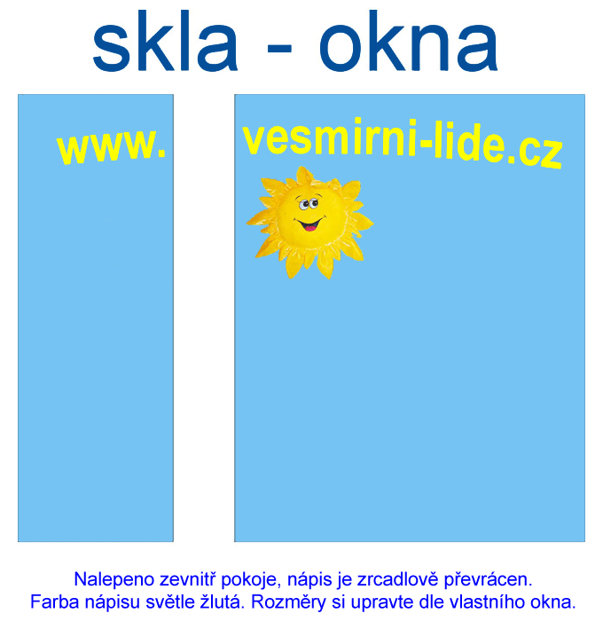 Nalepeno zevnitř pokoje, nápis je zrcadlově převrácen.