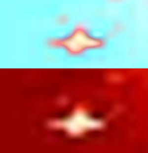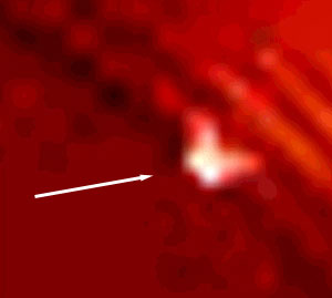 Obr. 11 - zvětšenina objektu označeného na obr. 10 šipkou - srov. profil "komety" na obr. 5!