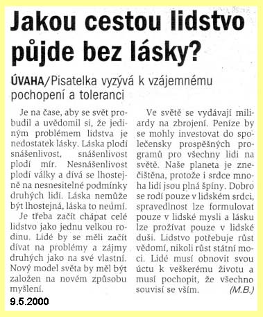 23 tn_23.jpg (2578 bytes)Jakou cestou půjde lidstvo bez lásky? (9.5.2000)