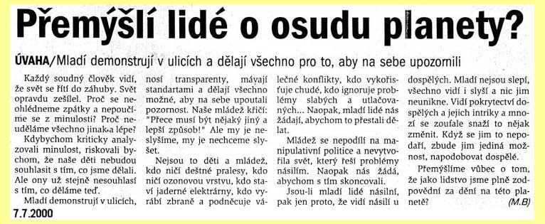 27 tn_27.jpg (3024 bytes)Přemýšlí lidé o osudu planety? (7.7.2000)
