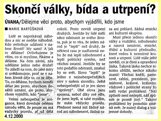 33 tn_33.jpg (4235 bytes)Skončí války, bída a utrpení? (4.12.2000)