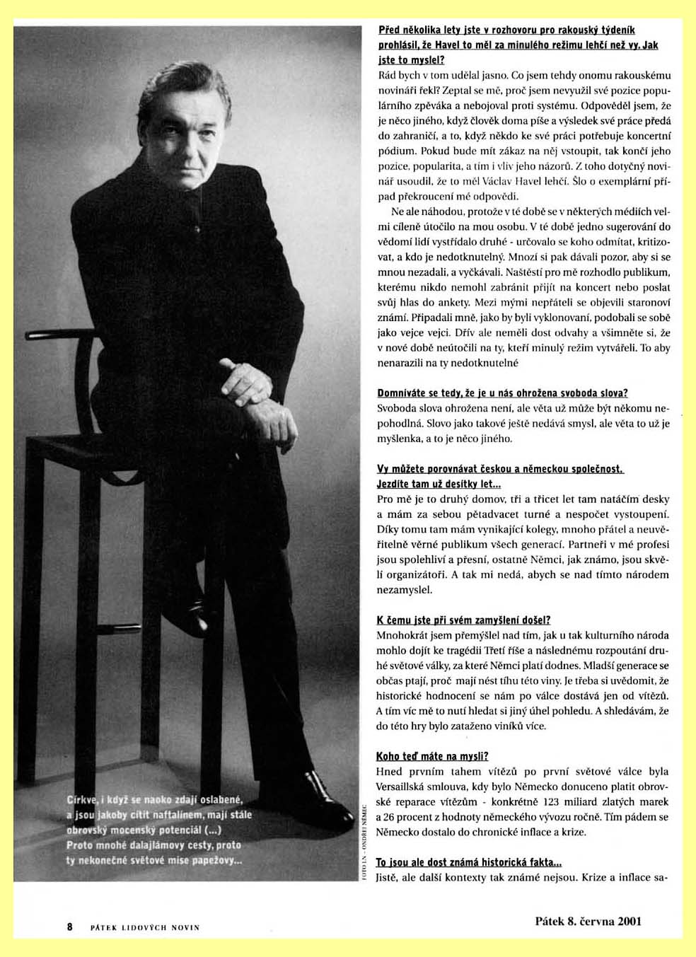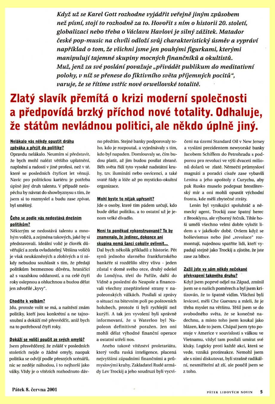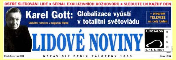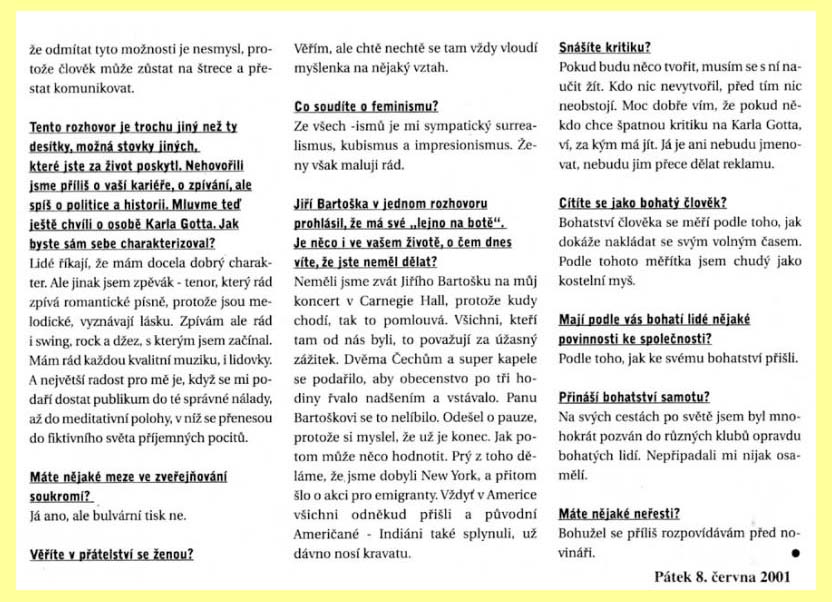 65 Karel Gott - Bojím se o tento svět (8.6.2001): textová verze, obrázková verze:
