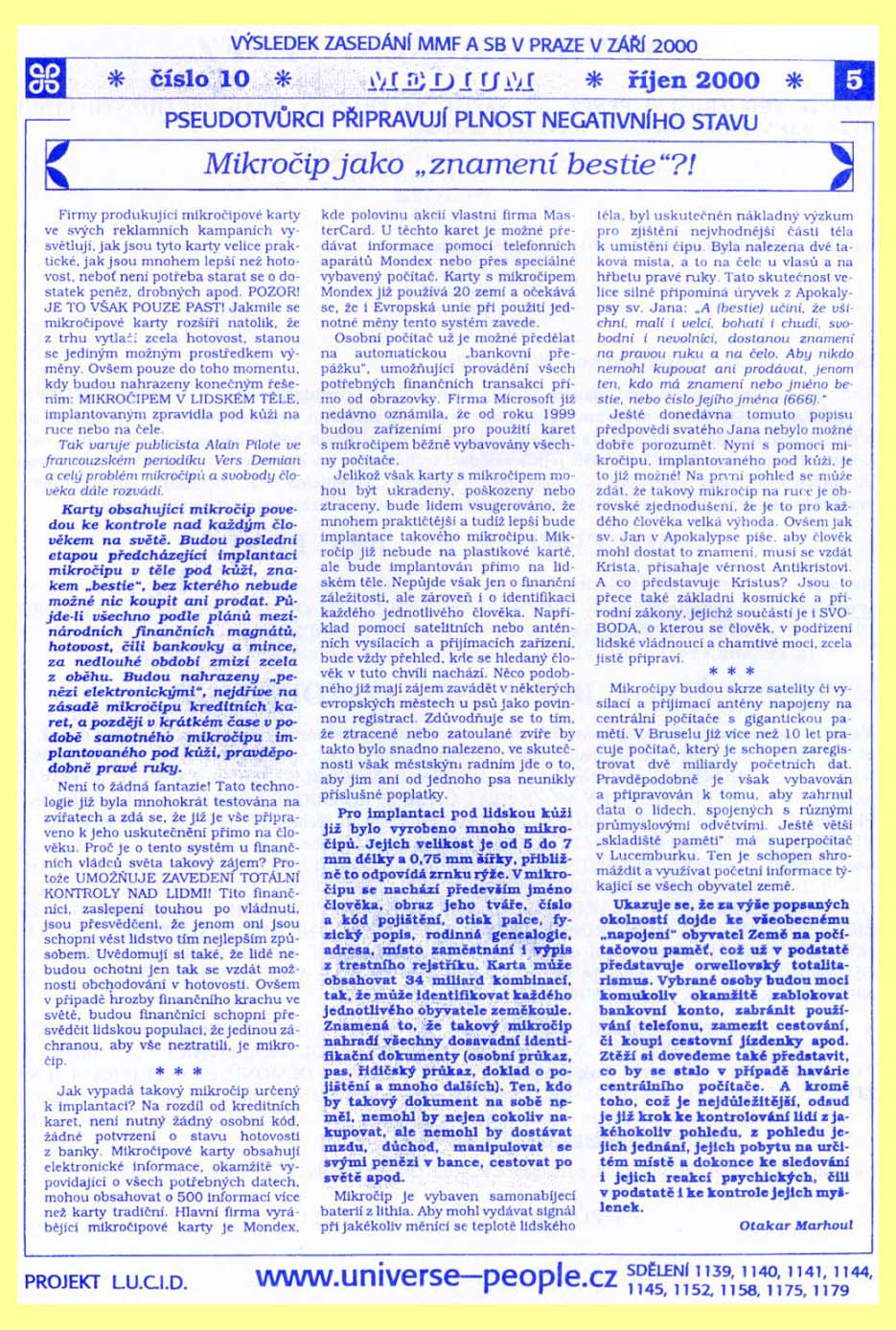 Mikročip jako "znamení bestie"?! (10.2000)