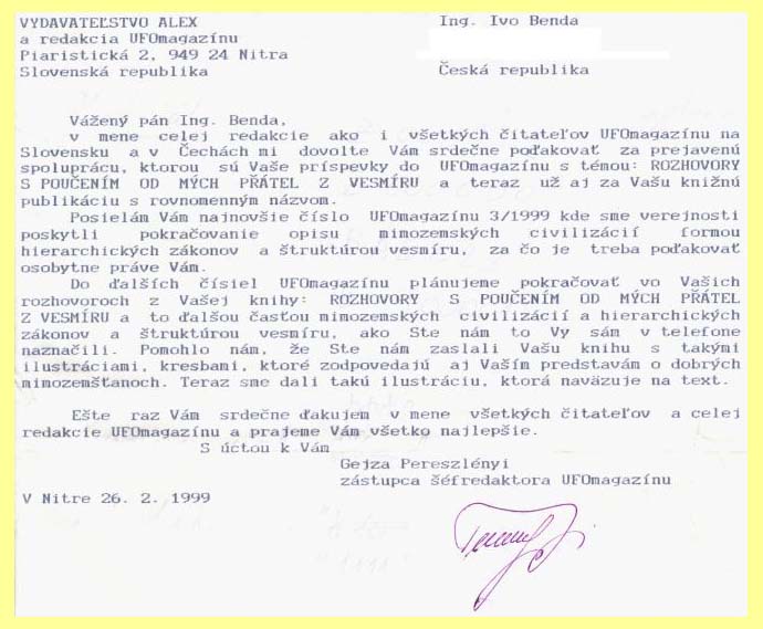 Dopis z UFOmagazínu SR (26.2.1999)
