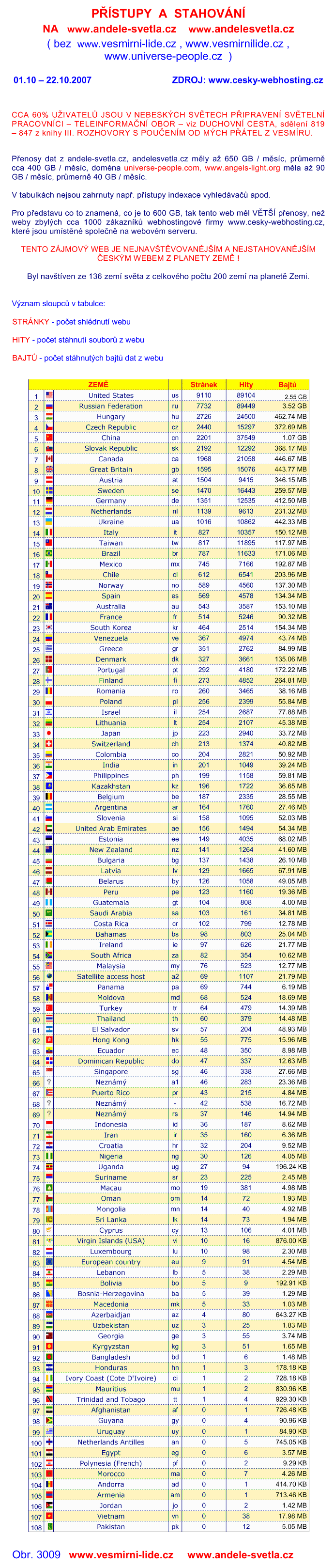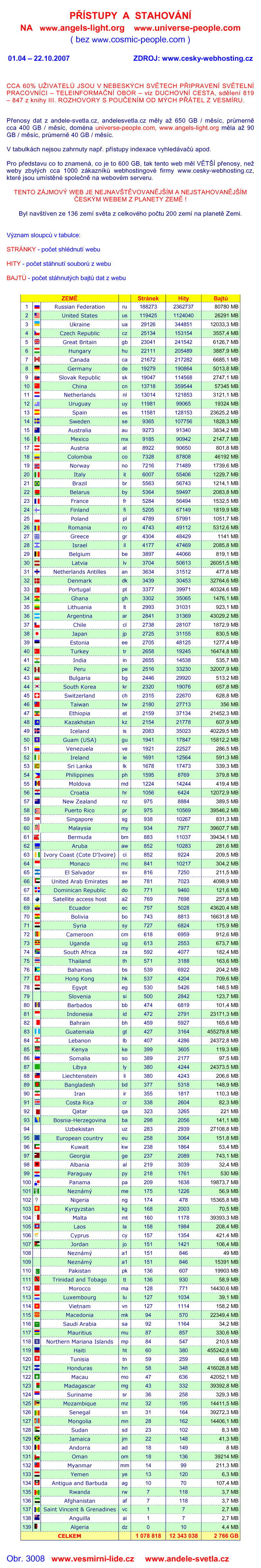 PRISTUPY a STAHOVANI ze 136 ZEMI SVETA od 1.4 - 22.10.2007 na www.angels-light.org a www.universe-people.com  PRISTUPY a STAHOVANI ze 136 ZEMI SVETA od 1.10 - 22.10.2007 na www.andele-svetla.cz a www.andelesvetla.cz  PRISTUPY a STAHOVANI ze 136 ZEMI SVETA od 1.10 - 22.10.2007 na www.angels-light.org a www.universe-people.com